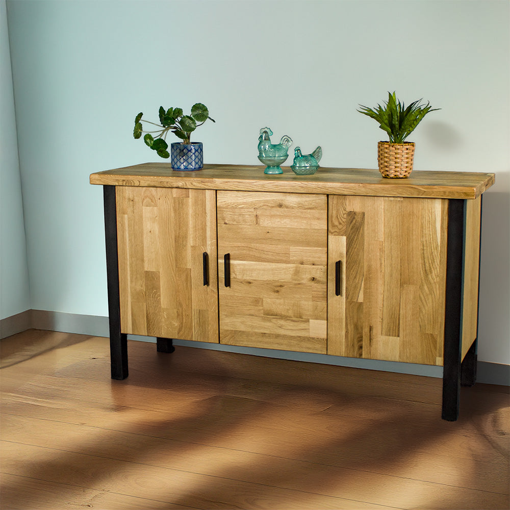 Design-wise, the Golden Gate Buffet combines a natural oak body with powder-coated steel accents to create a striking look, that is sure to impress with its modern aesthetic and elegant blend of wood and metal reminiscent of where this buffet gets its namesake.