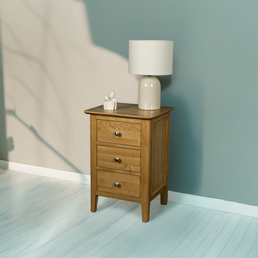 Inspire a warm and inviting atmosphere to your bedroom with an Oak Bedside Table in NZ. Expertly crafted from premium American Oak wood, our oak wooden bedside tables have a natural beauty and traditional charm that can fit in to just about any bedroom. With a wide range of sizes and designs, there’s a perfect oak bedside table for you.