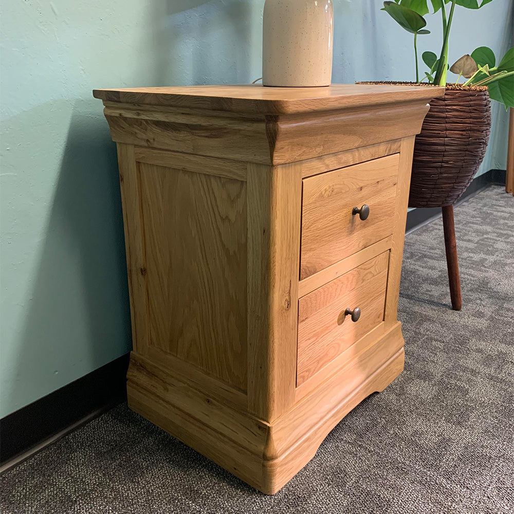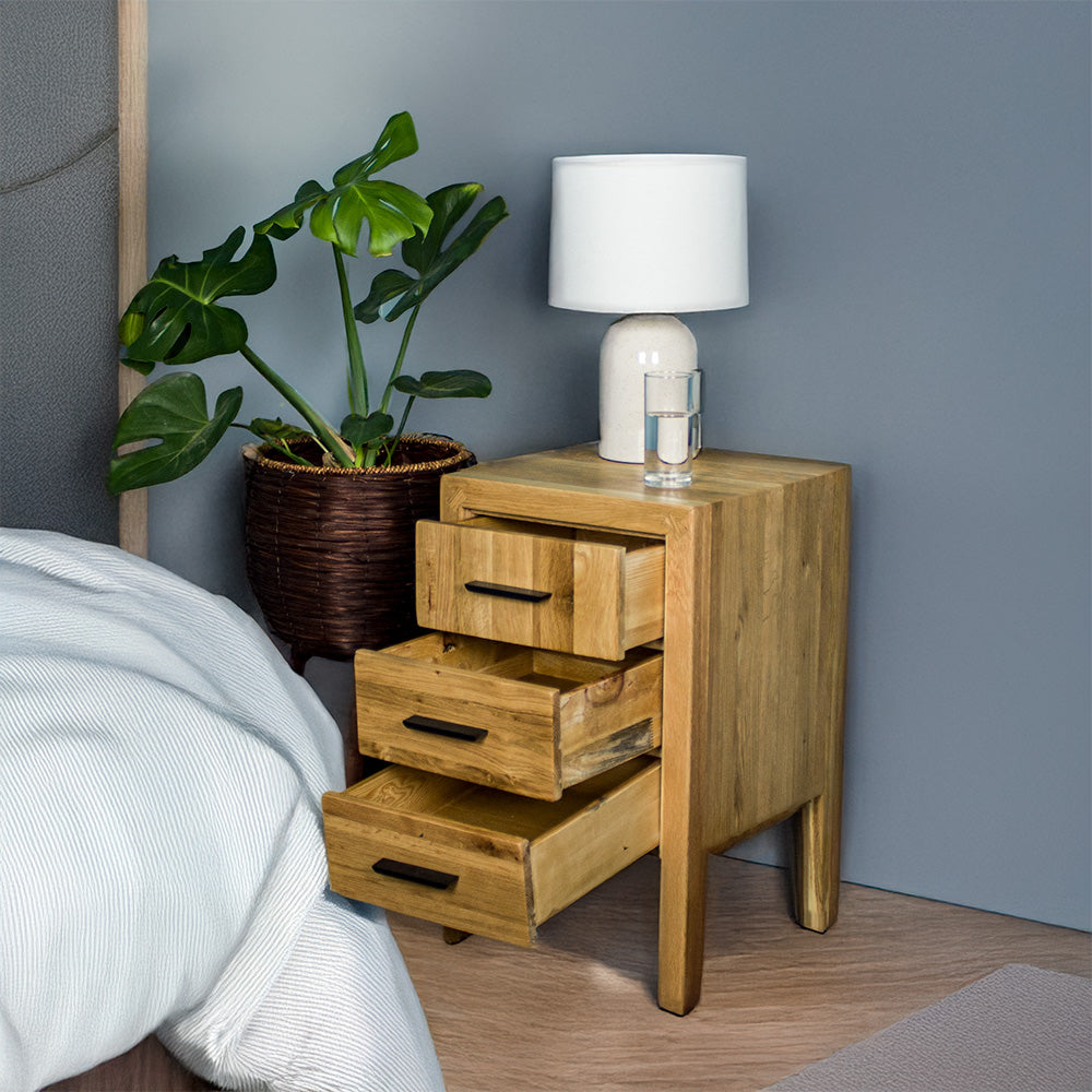 Inspire a warm and inviting atmosphere to your bedroom with an Oak Bedside Table in NZ. Expertly crafted from premium American Oak wood, our oak wooden bedside tables have a natural beauty and traditional charm that can fit in to just about any bedroom. With a wide range of sizes and designs, there’s a perfect oak bedside table for you.