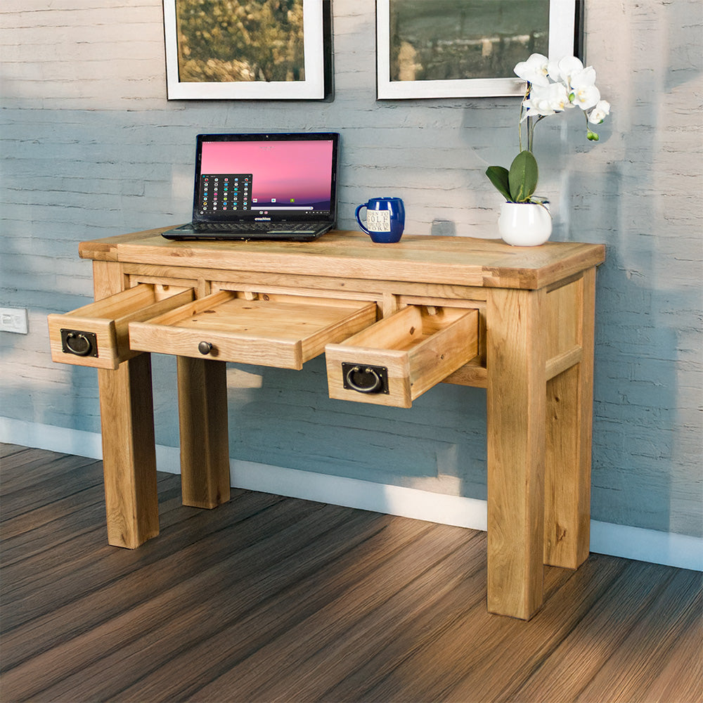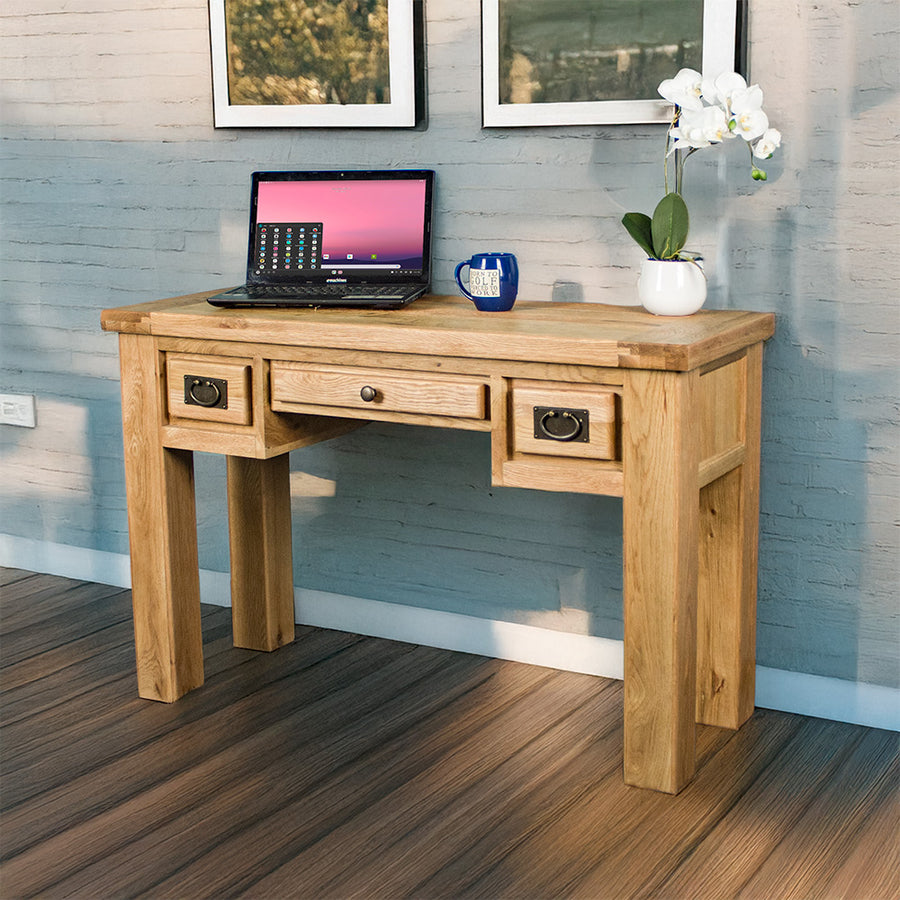 Rustic in charm, but confident in build, it features tongue and groove back panelling and hanging brass handles; classic details that feel right at home. Whether styled as a dressing table or pulled into service as a desk, the Amstel Desk/Dressing Table brings quiet beauty and everyday function together with ease.