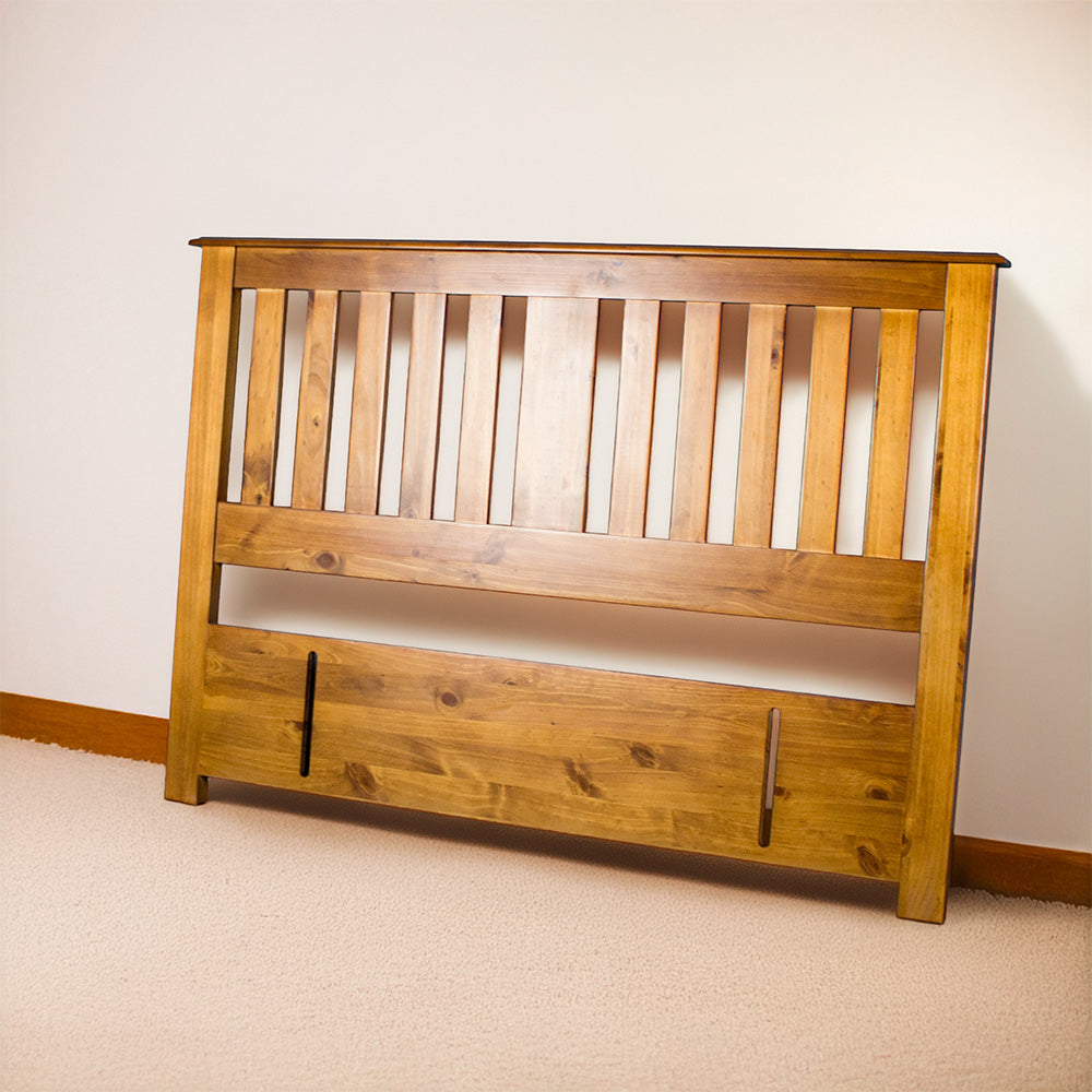The New Quebec Double Size Pine Headboard blends timeless design with everyday practicality. Crafted from solid New Zealand pine and finished in a rich rimu stain, it brings warmth, structure, and a refined presence to any double bed setup.