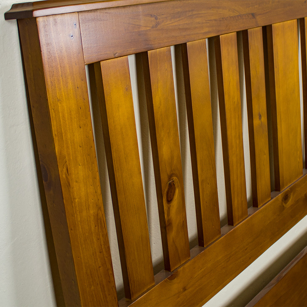 Front of the Rimu stained New Quebec Single Size Pine Headboard