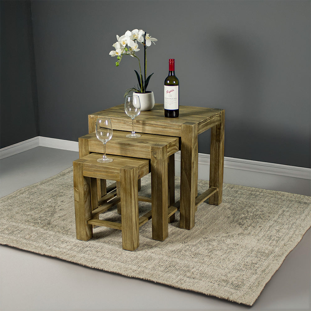The Vancouver Pine Nesting Tables offer a clean-lined, modern look with the rugged charm of a stonewashed finish. Designed for flexibility and built to last, they’re the understated multitaskers every living space benefits from.