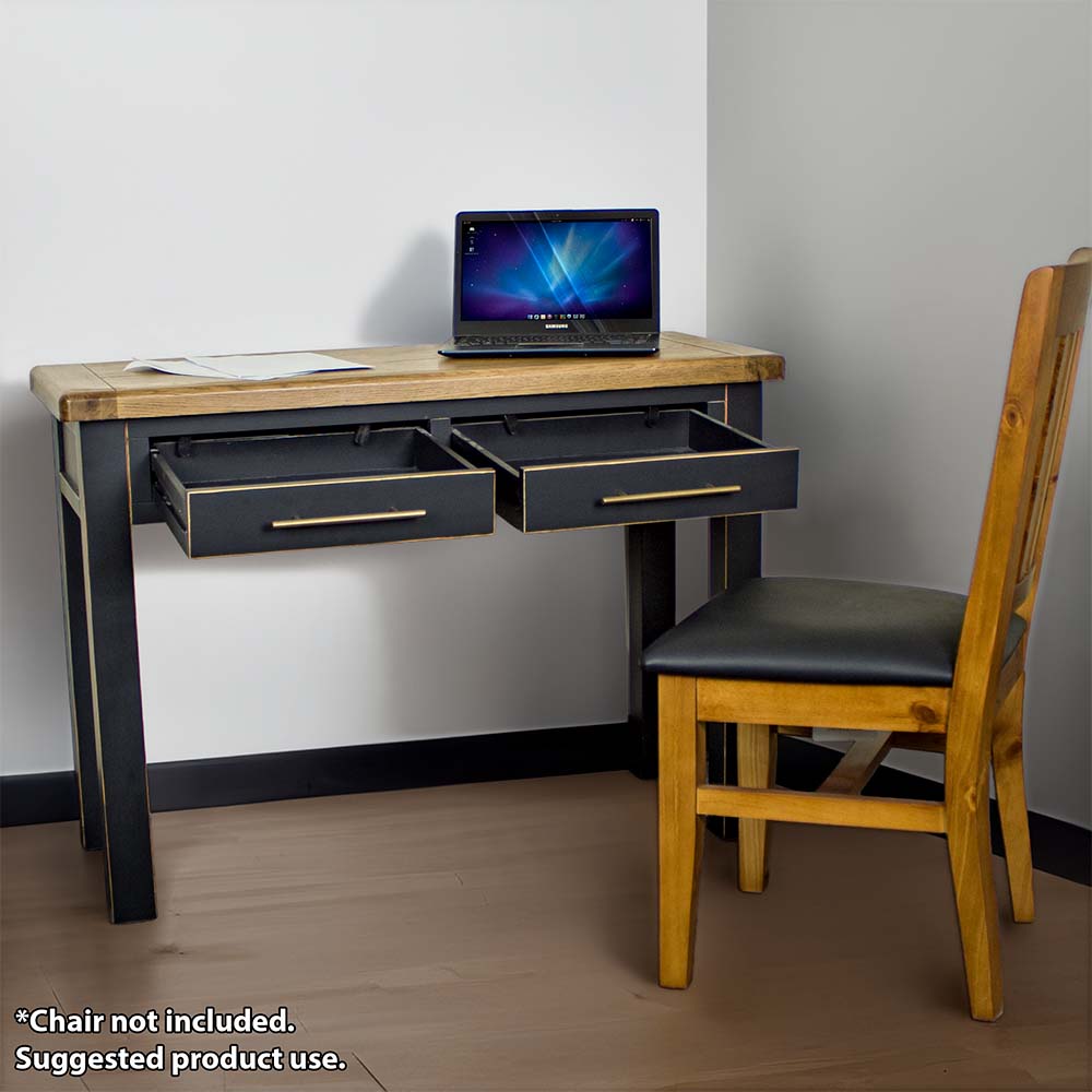 With two drawers to hold all your important stationery and miscellaneous documents, the Cascais Black Desk can also easily function as a hall table with its simple design. The drawers also feature routed tracks and dovetail joining, allowing them to keep their rigid shape and open smoothly even when packed to the brim.