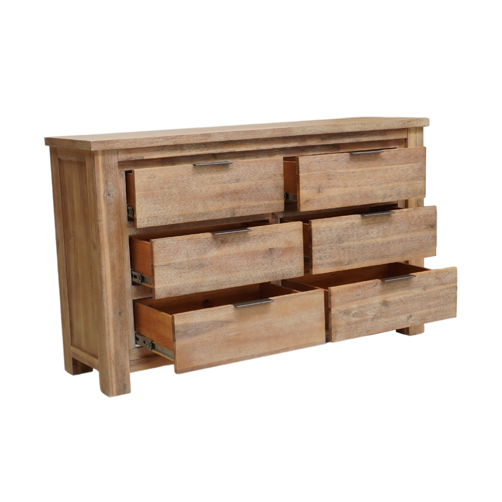 Made from acacia, our Mars furniture presents an otherworldly look with its minimal and modern design elements that are sure to impress. With an exotic finish that lets you feel the grain of the wood and sleek, brass handles that disappear into the design of the units. The units are also filled with the creature comforts you would like to see in modern furniture, such as the drawers being on strong, fully-extending metal runners to ensure a smooth and easy open every time!