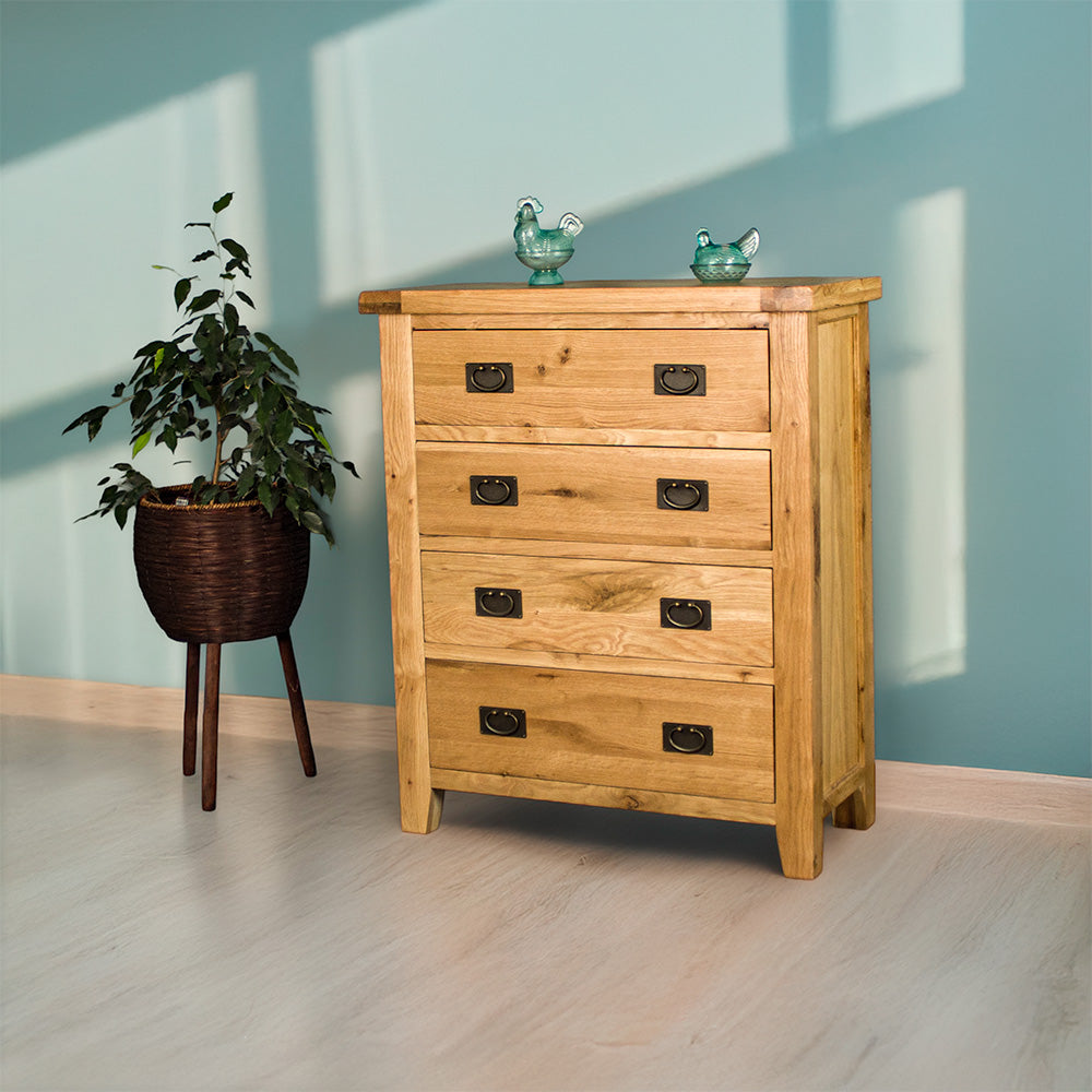 The Yes Four Drawer Oak Tallboy keeps things simple, and that’s exactly where its charm lies. No fuss, no excess. Just solid design and dependable storage.