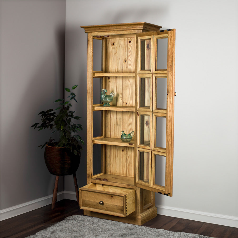 Crafted entirely from oak, this cabinet is built to support the weight of heirlooms, glassware or collectibles with ease. Its natural finish highlights the grain while giving just the right amount of brightness to make the whole piece stand out, without shouting for attention.