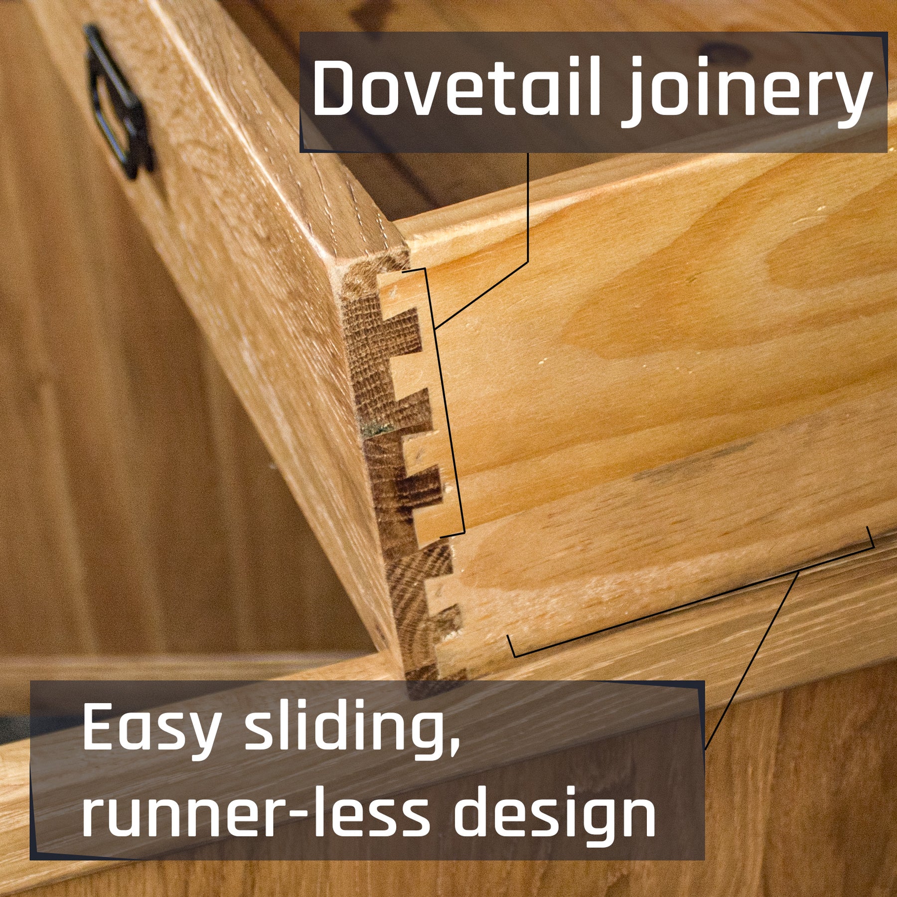 Whether it's board games and photo albums in the lower cupboards or miscellaneous documents and fancy cutlery in the upper drawers, the Vienna Large Buffet hosts it all with room to spare! The dovetail joining on the drawers ensures they open with ease every time and keep their rigid shape for many years to come.