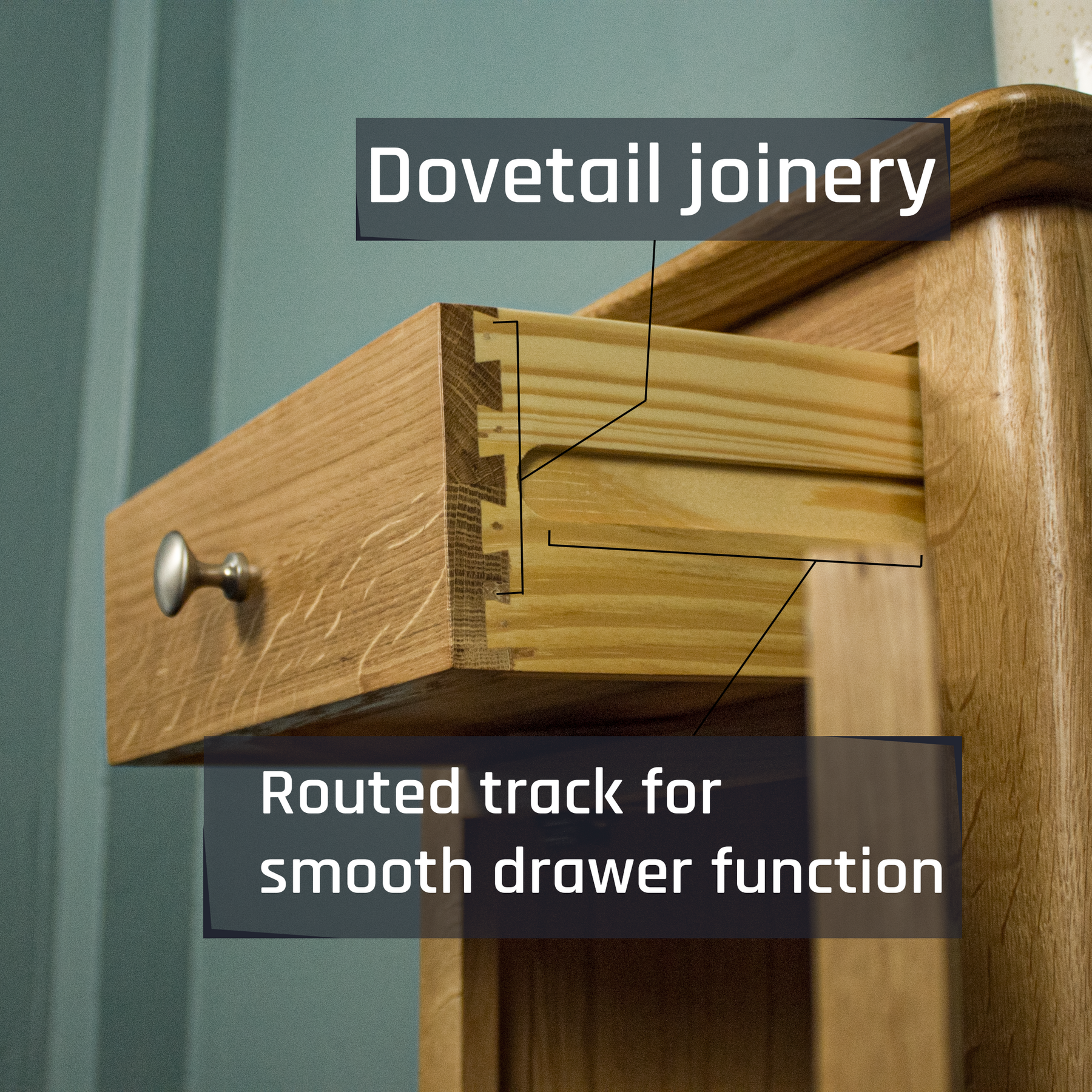 Whether it's keeping spare linens, knick-knacks, or those all-important memories, the Victoria Small Oak Cupboard is the easiest way to add some compact storage into any room! Equally placed at the end of the hallway or bedside, this cupboard features built-in routes for drawer runners to ensure it can keep doing its job for many years to come!
